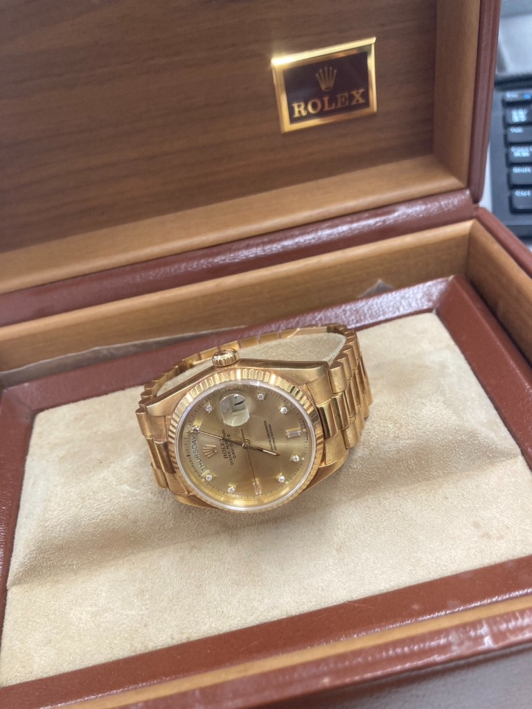 今回お買取りさせていただいたのは、「ロレックス デイデイト」です⌚️。こちらのお品は非常に状態が良く、丁寧に保管されており、お客様が大切に扱ってきたことが伝わってきました❤️。